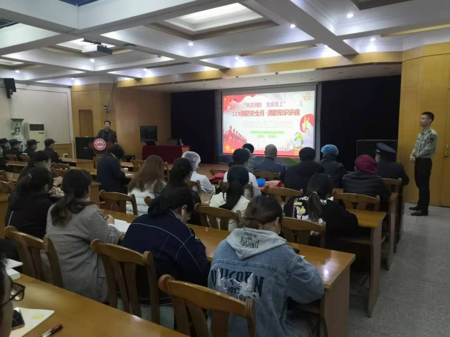 11月19日上午,为增强bat365重点部位一线员工的防火安全意识,提高疏散逃生技能,按照学校“消防安全月”工作安排,保卫处邀请消防安全专家在济南校区多功能厅举办消防安全培训讲座,图书馆、实验室管理中心、宿舍管理中心、物业公司和餐厅从业人员等部门参加了本次培训。