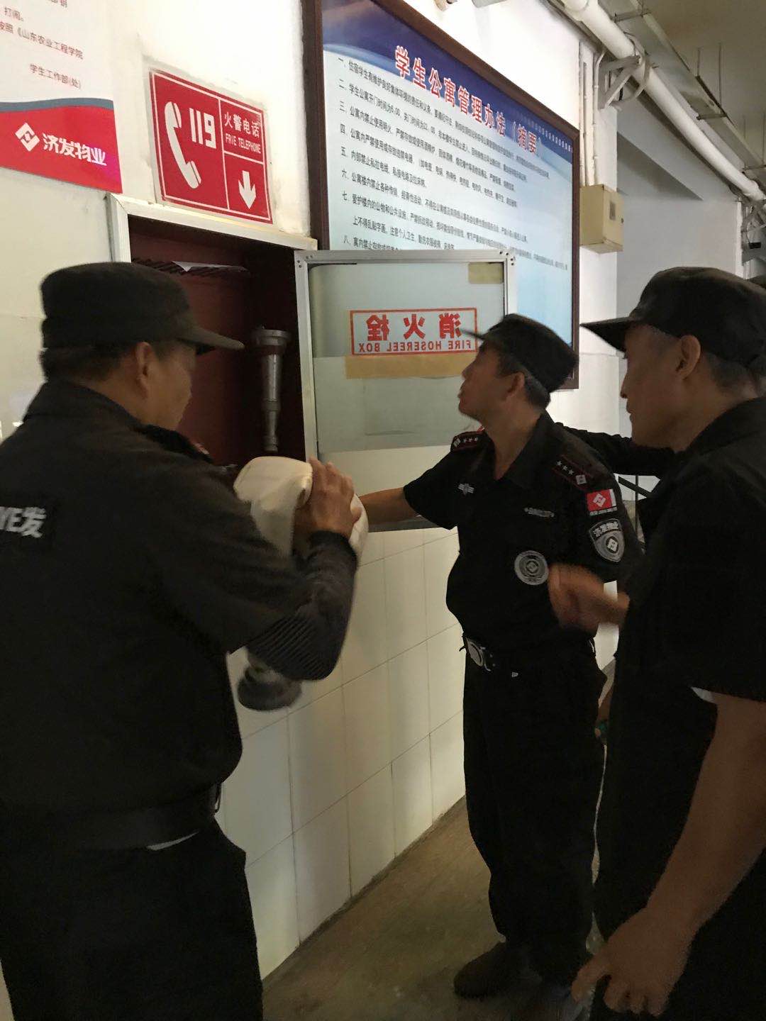 为提高学校校卫队义务消防员灭火救援和疏散的能力,从实战中查找不足,总结经验,识别和改进存在的问题,9月26日保卫处组织济南校区义务消防队员开展了消防业务知识培训。主要培训了消防安全四个能力,消防器具的使用方法和要领,水带、水枪连接等技术要领,常见的火灾隐患、火灾初期的处置方法、火场逃生、组织疏散、应急救援等校园消防安全常识。