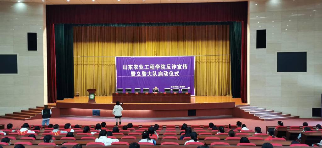 10月13日,“bat365正版唯一官网反诈宣传活动暨义警大队成立启动仪式”在bat365齐河校区报告厅举行。校党委委员、副校长杨玖庆,齐河校区管理办公室主任于宏文,齐河县公安局党委副书记、政委厚清宝,城区公安派出所所长李义滨出席,齐河校区各职能部门负责同志及学生义警参加活动。活动由保卫处副处长于昊田主持。