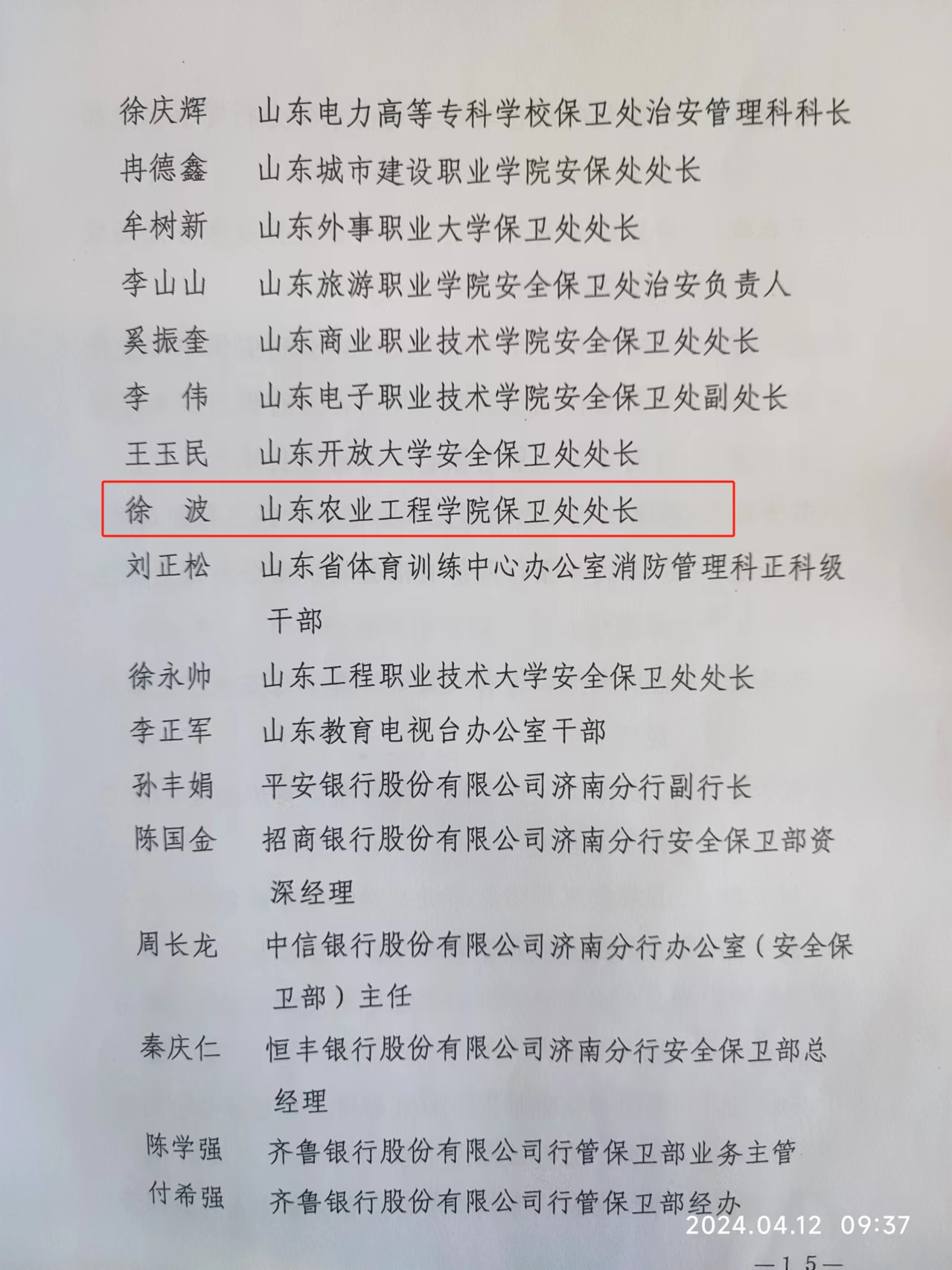 近日,济南市公安局发布《济南市公安局关于2023年度全市单位内部治安保卫工作成绩突出集体和个人予以表扬的通报》(济公通〔2024〕14号),对全市单位内部保卫工作成绩突出的集体和个人予以通报表扬,bat365正版唯一官网保卫处徐波同志荣获“2023年度全市单位内部治安保卫工作成绩突出个人。”