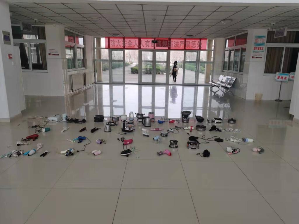 11月18日,在学生宿舍楼下开展了宿舍违规电器用品展览,切实提高学生安全意识,营造安全和谐的校园环境。