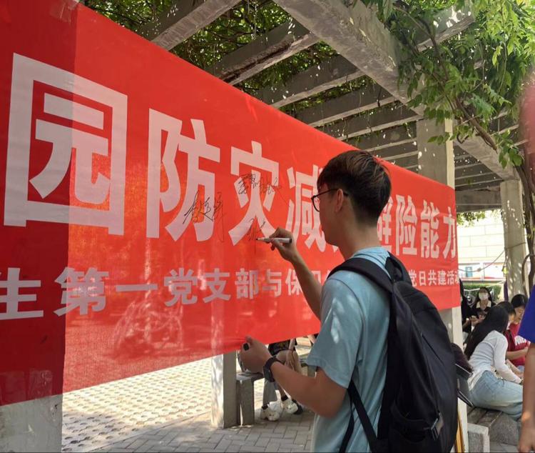 本次活动以“人人讲安全,个个会应急,着力提升校园防灾减灾避险能力”为主题,此次主题党建系列活动包括防灾减灾学生签名、防灾减灾倡议、防灾减灾知识宣传、现防灾减灾知识讲解、防灾减灾主题班会等活动,帮助学生树立安全意识、掌握、掌握安全知识,让师生们深入了解防灾减灾的重要性。