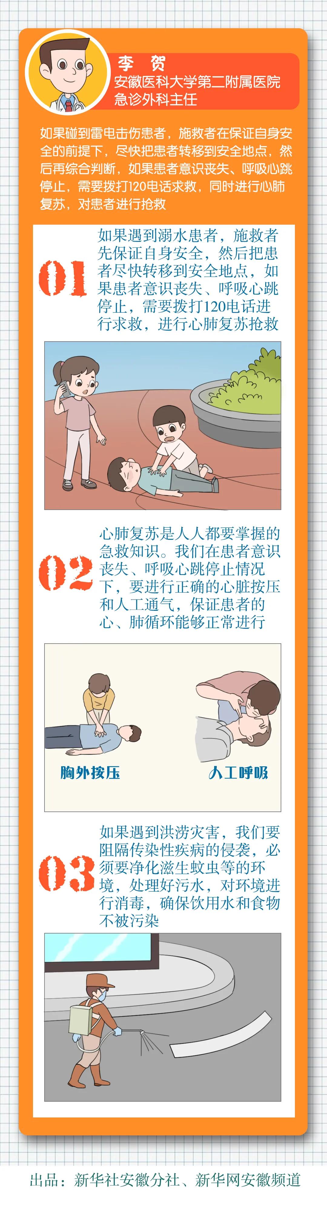 如何实现安全施救,同样值得关注。在安徽医科大学第二附属医院急诊外科主任李贺看来,极端天气容易造成雷电击伤、溺水等情况。如果遇到雷电击伤患者,施救者在保证自身安全的前提下,要尽快把患者转移到安全地点,若患者意识丧失、呼吸心跳停止,需要拨打120电话求救,同时对患者进行心肺复苏抢救。