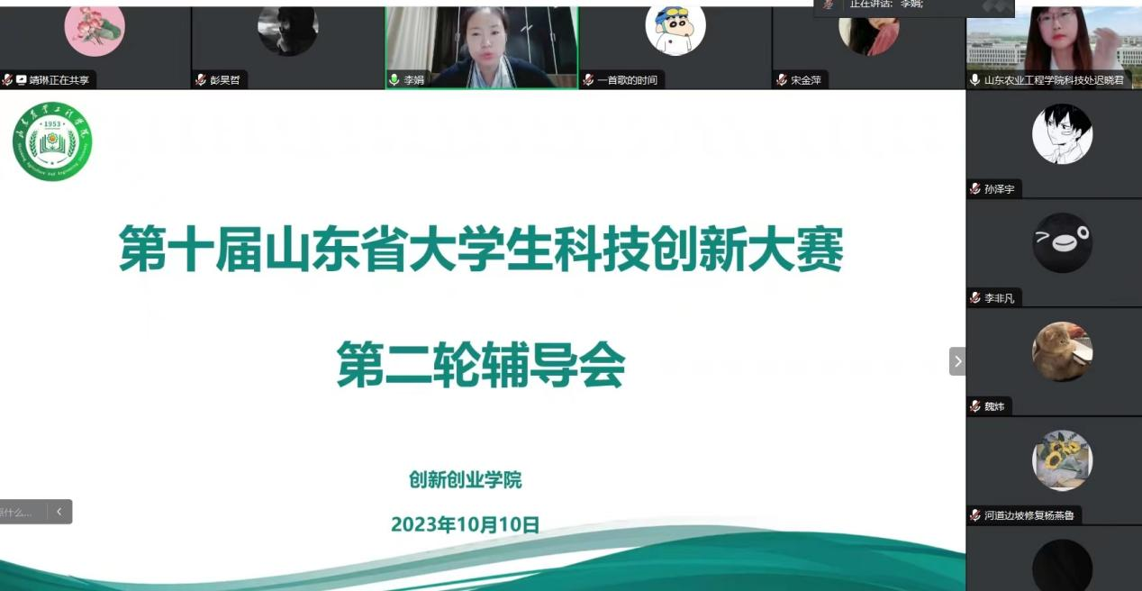 为更进一步推进第十届山东省大学生科技创新大赛各项工作,提升bat365参赛团队的创新能力,我院召开了第十届山东省大学生科技创新大赛第二轮辅导会。会议由创新创业学院副院长李娟主持,邀请到科技处处长迟晓君进行相关经验分享。