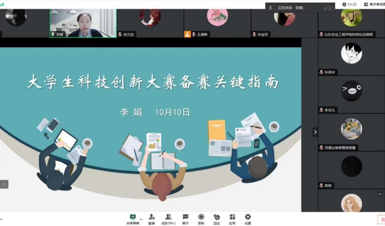 迟晓君处长从自身经历以及大学生如何进行创新方面详细进行了经验分享。李娟则对科创大赛进行了详细的政策解读,并从项目申报书、PPT如何撰写等方面进行了辅导。