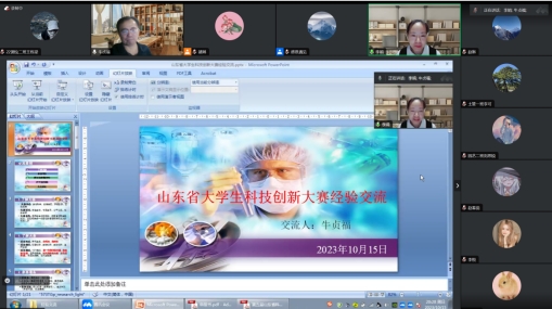 为培养学生创业精神,助力学生实现创新梦想,提高校区孵化项目的参赛质量,2023年10月15日,创新创业学院于腾讯会议举办“山东省大学生科技创新大赛第三轮辅导会”线上主题会议,为参赛项目团队成员进行辅导,本次辅导会由创新创业学院副院长李娟老师主持,林业工程学院副院长牛贞福老师作为主讲。