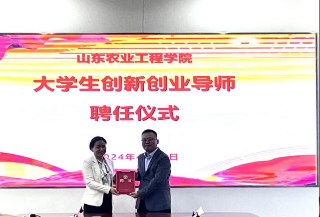 李院长为校友会副会长孔令建颁发大学生创新创业导师聘书。