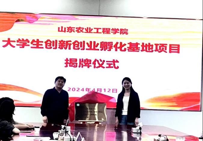 随后,陈处长和王书记为大学生创业孵化基地揭牌。