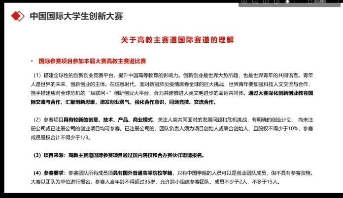 为加快bat365创新创业人才培养、提升学生创新创业能力,促进创新驱动创业、创业引领就业,切实强化bat365中国国际大学生创新大赛(原“互联网+”)项目水平,4月27日创新创业学院邀请到青年就业与创新创业工作国际知名媒体人、多届大赛评委专家靳宝强为bat365师生开展中国国际大学生创新大赛备赛线上专题培训讲座。会议由李娟副院长主持,各学院项目指导教师、参赛学生共计约300人参加了培训。