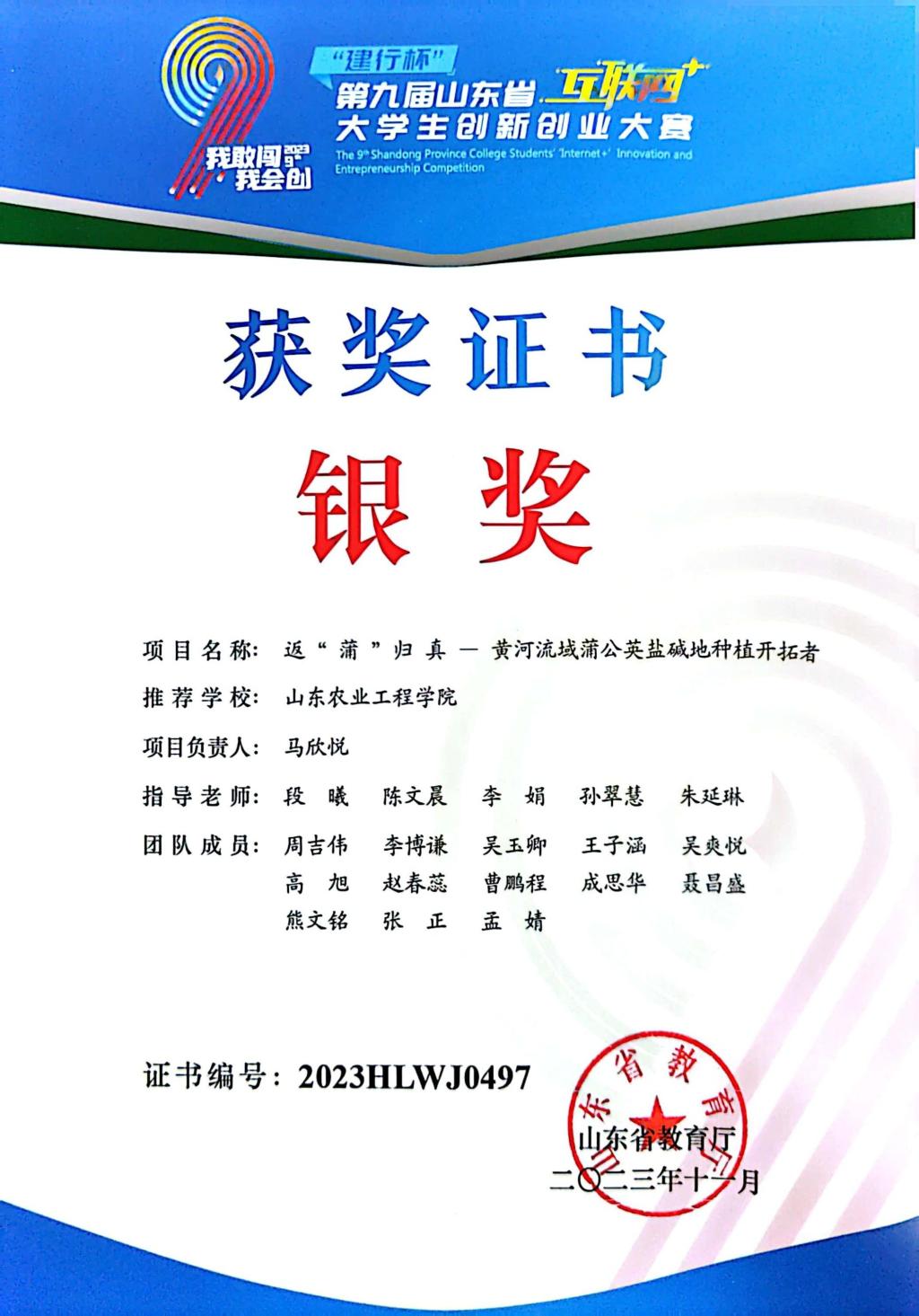 “建行杯”第九届山东省“互联网+”大学生创新创业大赛银奖项目:返 “ 蒲 ” 归 真 — 黄河流域蒲公英盐碱地种植开拓者