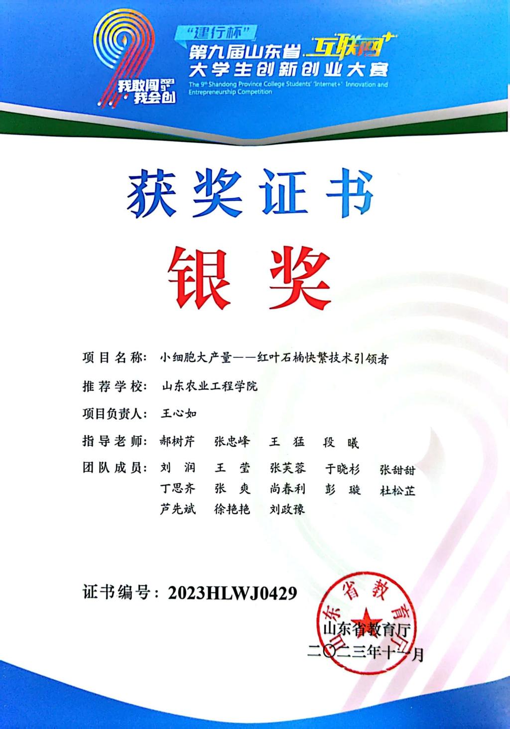 “建行杯”第九届山东省“互联网+”大学生创新创业大赛银奖项目:小细胞大产量——红叶石楠快繁技术引领者
