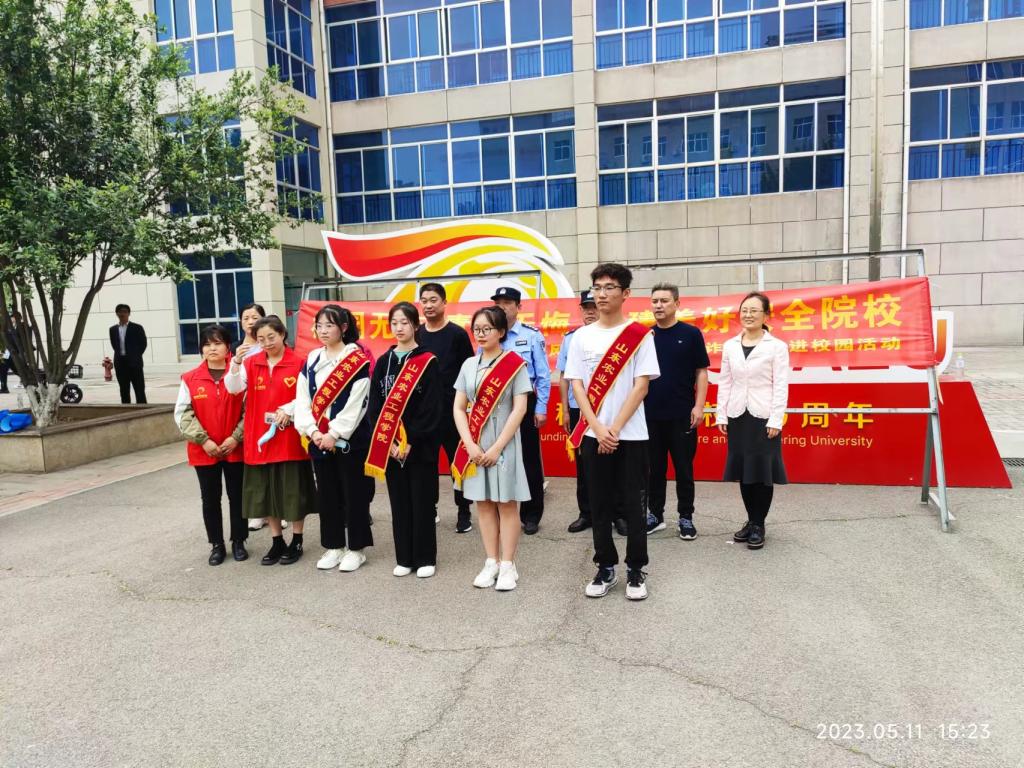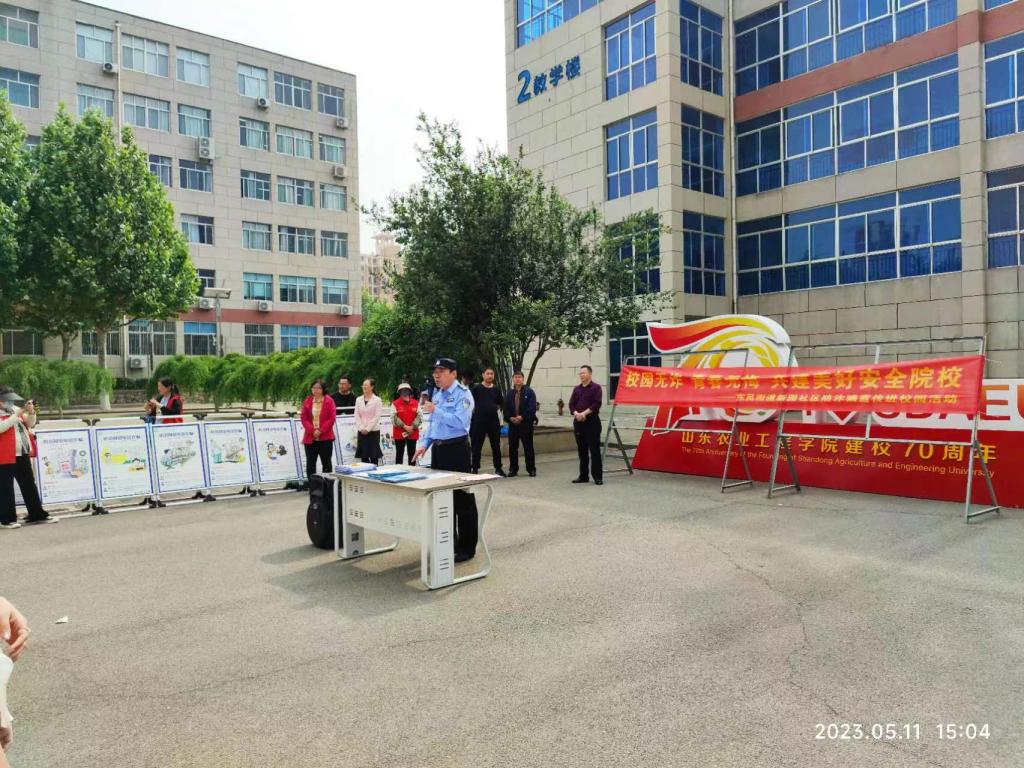 为深入贯彻落实习近平总书记对打击治理电信网络诈骗犯罪工作的重要指示精神,进一步增强学生的防范电信网络诈骗意识。5月11日下午,保卫处联合东风派出所、东风办事处、新园社区开展“校园无诈,青春无悔,共建美好安全校园”为主题的校园防范电信网络诈骗宣传活动。校党委委员、宣传部部长牛化振参加活动。