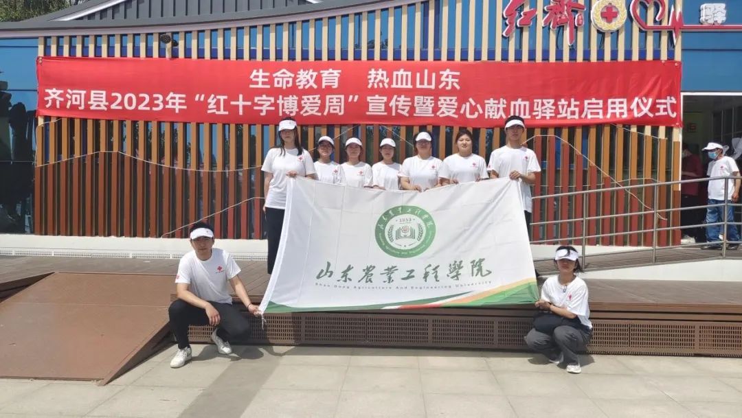 2023 年 5 月 14 日,齐河县举办“生命教育 热血山东”宣传活动暨献血驿站启用仪式,bat365学生会志愿者积极参与,宣传无偿献血,参与志愿服务,用实际行动传递爱心、奉献温暖。