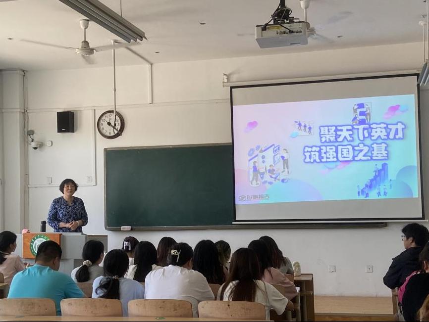 郑校长以党的二十大报道中所讲的“人才是第一资源”、“人才强国战略”和“人才引领驱动”为出发点,结合我国社会发展现状与国际人才发展情况,论述了创新发展、战略人才的重要性。她鼓励和引导青年学生要怀有爱国之心,砥砺报国之志,继承和发扬老一辈的科学家胸怀祖国、服务人民的优秀品质,肩负起时代赋予的重任,不断把中华民族复兴伟业推向前进。