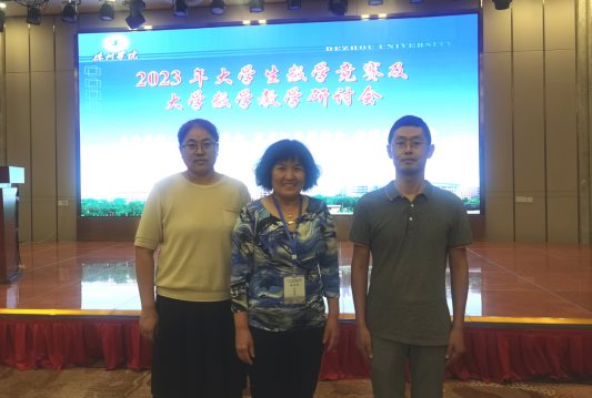 2023年7月12日至14日,由山东数学会、黑龙江省数学会和新疆数学学会共同主办、德州学院承办的“2023年大学生数学竞赛暨大学数学教学研讨会”在山东德州凤都酒店成功举办,我部三位教师参加了本次研讨会。
