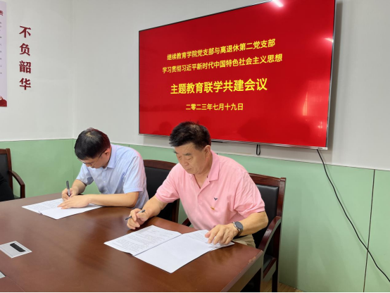 7月19日,为深入开展学习贯彻习近平新时代中国特色社会主义思想主题教育,持续推动主题教育走深走实,离退休干部党委第二党支部与继续教育学院党支部召开座谈交流会,开展主题教育联学共建活动。