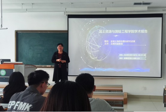 2023年10月11日,王晓玲副教授为同学们做了“全域土地综合整治研究进展”学术报告,会议地点为淄公北楼B-406教室,土地资源管理专业50余名同学们参加了本次学术报告。