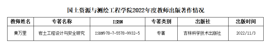 国土资源与测绘工程学院2022年度教师出版著作情况统计