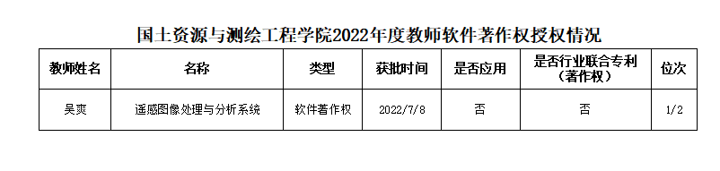 国土资源与测绘工程学院2022年度教师软件著作权授权情况统计