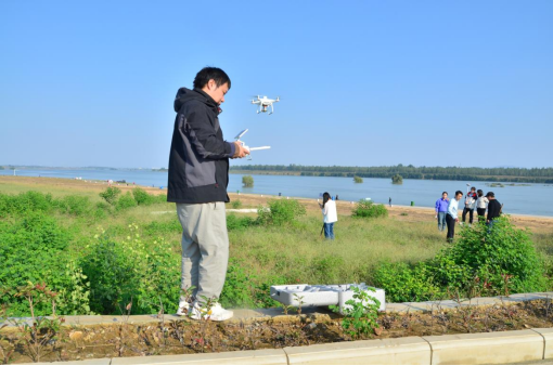 在项目现场,张忠峰院长听取了相关负责人对项目实施进展的汇报。随后,团队成员结合无人机等先进技术手段,对项目区内植被的生长状况、空间分布特点以及不同植物种类的适应性表现等进行了精准、高效地监测。张忠峰院长就团队利用现代信息技术进行植物群落的空间监测和管理表示肯定,并强调现代信息技术在河道生态修复项目实施及管理中的重要性。