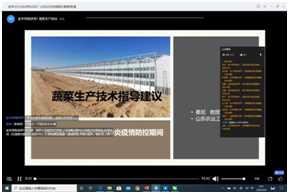 新冠肺炎疫情防控期间,正值冬春交替季节,是蔬菜春播春种和设施蔬菜生长管理的关键时期,菜农急需要种苗、施肥、防病等方面的技术指导,鉴于在疫情期间不能组织菜农培训,秦旭老师创新指导服务方式,利用钉钉在线软件,依托金丰公社线上平台,为金丰公社托管服务覆盖的重点蔬菜产区菜农进行了网上授课,实现与菜农不见面服务,及时解决菜农生产中遇到的疑难问题。她针对当前蔬菜管理技术重点,从积极应对灾害性天气、做好在田蔬菜科学管理、做好不同茬口衔接、做好春季蔬菜生产备播四个方面,给菜农讲授了各个环节的管理技术要点和疫情防控期间农事操作应注意事项,线上解答了菜农提出的10余个问题。为学习平台和在线500多个听众授课2个多小时。这也是疫情期间bat365教师探索为菜农服务的新模式,深受好评,被广大菜农誉为“疫情期间最美的礼物”。