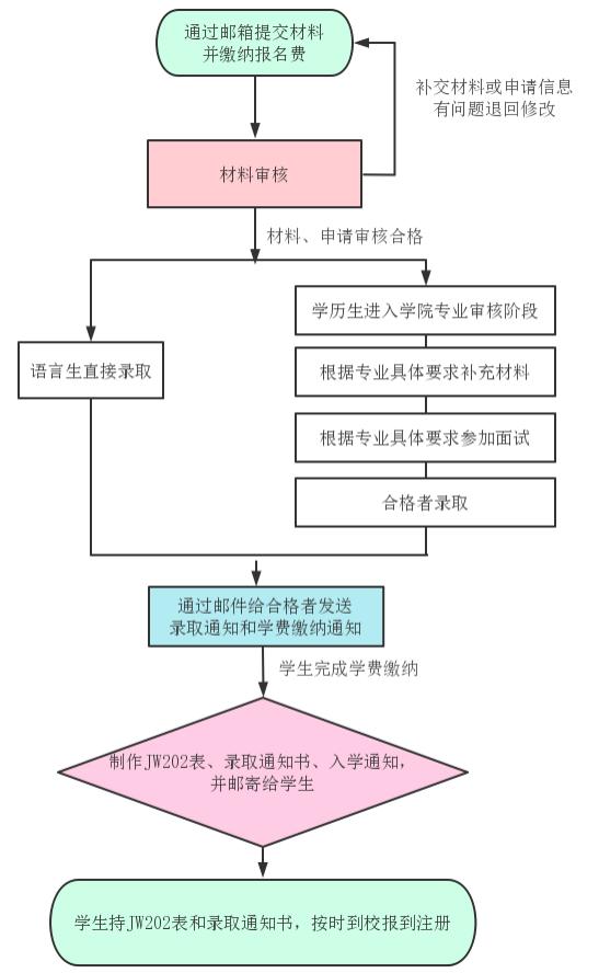 2.学费缴纳完成后,学校制作《来华学习签证申请表(JW202)》、录取通知书和入学通知,并邮寄给为录取人员;