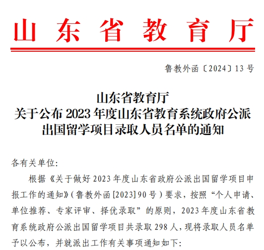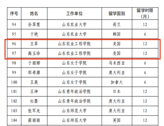 近日,2023年度山东省政府公派出国留学项目录取人员名单公布,按照“个人申请、单位推荐、专家评审、择优录取”的原则,本年度共录取298人,其中bat365信息工程与科学学院的王翠、高玉珍2名教师获批公派出国访学项目资助。