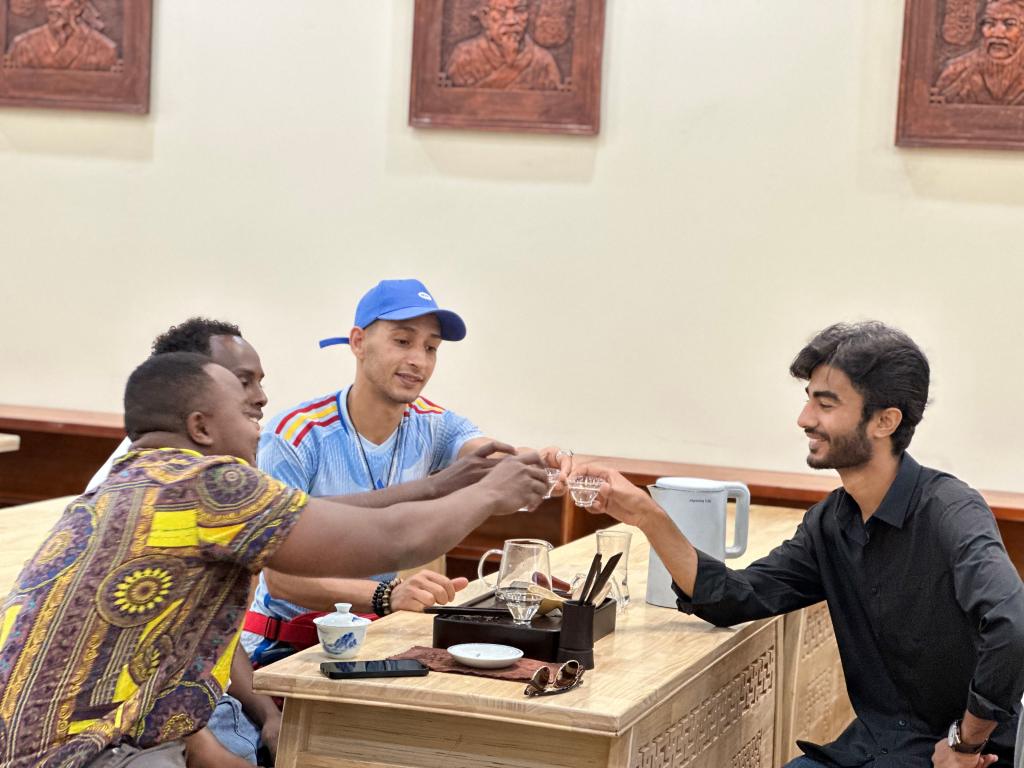 Ould(右二)和Adil(右一)体验中国茶艺文化