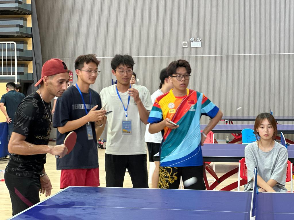 Ould(左一)参加学校举办的乒乓球国际友谊赛