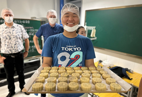 9月13日,中国传统节日——中秋节前夕,为丰富bat365外籍师生的校园文化生活,使外籍师生进一步了解并体验中国传统文化,国际交流与合作处在淄博校区面点加工实训室组织了外籍师生“手作月饼 共庆中秋”活动。来自波兰、巴基斯坦、蒙古等国家的10余名在校外籍师生、辅导员及部分中国学生参加了此次活动。