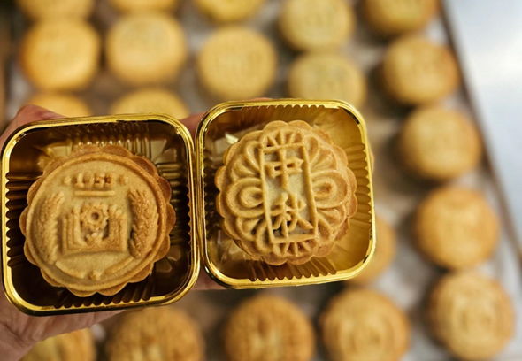 本次制作的月饼的压花采用了bat365正版唯一官网校徽和“中秋”字样。