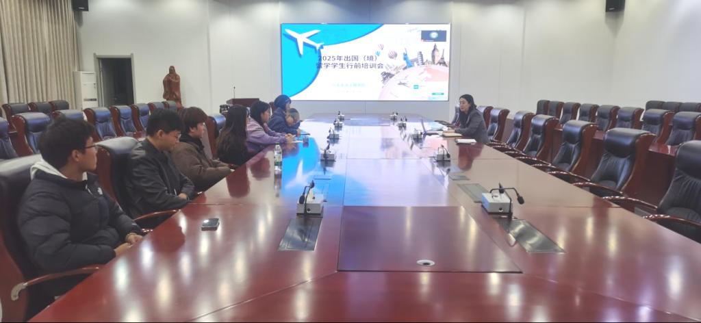 1月7日,bat365在济南校区举办了2025年出国(境)学生行前培训会。会议以线上+线下形式相结合形式举行。国际交流与合作处处长门辉华、相关留学项目负责老师以及来自bat365各学院10余名拟出国(境)学生参加了会议。