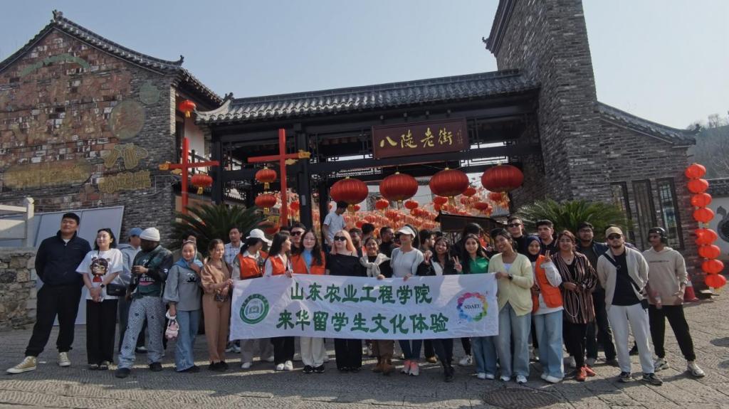 午后,师生们前往八陡古街。当地负责人热情接待,并担任讲解员,带领国际学生们穿梭于古街的各个角落。在青砖黛瓦、古朴建筑之间,古街的历史变迁、别具一格的建筑风格和独特的民俗文化一一展现在国际学生们眼前。他们不时驻足,仔细聆听讲解,对淄博的历史文化有了更为直观、深刻的认识。