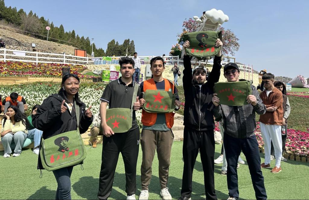 为进一步加深国际学生对中国文化的理解,一场别开生面的趣味中国知识竞赛在景区内火热开展,将趣味性与知识性巧妙融合。竞赛过程中,国际学生们积极参与,现场气氛热烈非凡。经过多轮激烈角逐,5名学生脱颖而出,获得了“为人民服务”“好好学习天天向上”复古背包这一独特奖励,喜悦之情溢于言表。