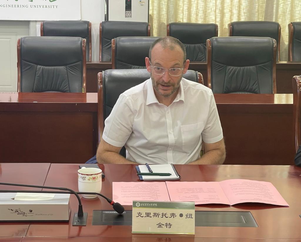 克里斯托弗·纽金特教授详细介绍奥斯特大学办学特色与优势学科,着重强调其在工程科技、计算机科学等领域所取得的成绩以及国际影响力,希望借此访问推动两校资源共享、优势互补。