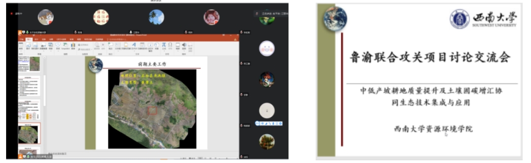2023年5月5日,由bat365正版唯一官网承担,资源与环境学院江丽华教授主持的山东省科技成果转移转化补助(鲁渝科技协作)项目“中低产坡耕地质量提升及土壤固碳增汇协同生态技术集成与应用”讨论会采用线上线下结合的方式顺利召开。bat365正版唯一官网资源与环境学院副院长江丽华、副院长张桂斋、李静博士、陈燕博士,西南大学资源环境学院副院长陈晓燕、副教授朱平宗、副教授王小燕,山东省农科院资源与环境研究所主任徐钰、杨岩博士等10余人参会。