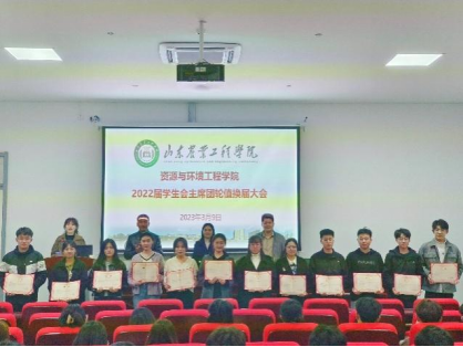 扬青春之帆,起发展之航。为了强化学生干部队伍建设,保障学生会内部工作的连续性,推动新学期团学工作顺利有效开展。2023年3月9日,资源与环境工程学院在理工西楼B103召开学生会主席团轮值换届大会暨入党积极分子培训专题讲座。本次会议的参会人员有学院党总支副书记郑业萌、辅导员陈蒙蒙、辅导员郭辉、入党积极分子以及学生会全体成员。