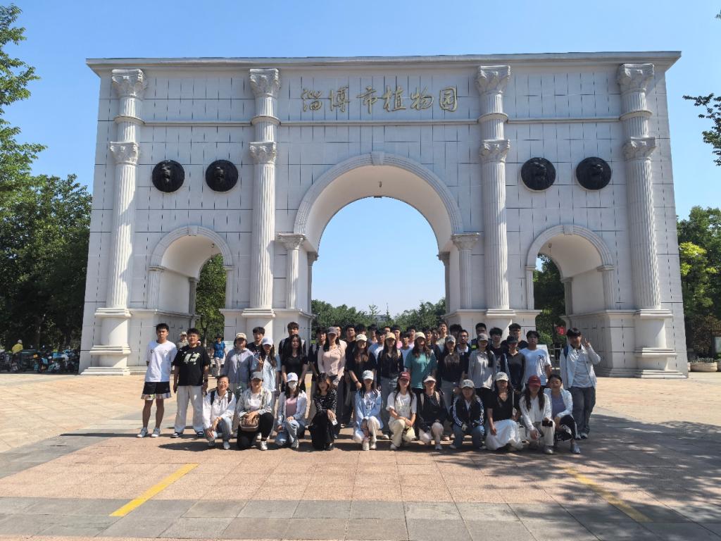 在淄博植物园内,学生们辨认不同的植物群落,学习植物的分类和生态习性,体会园林设计中的生态理念。