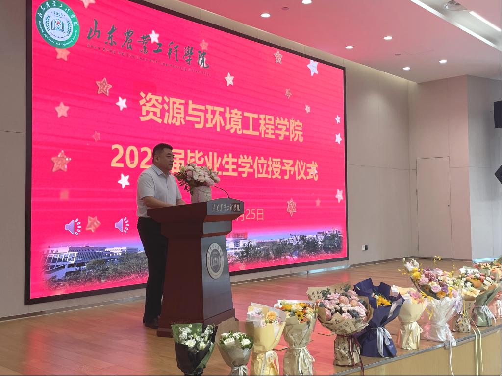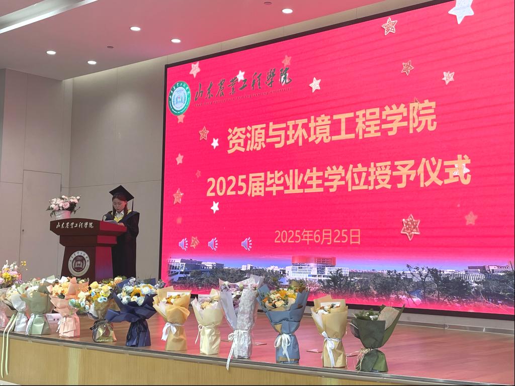 6月26日上午,淄博校区行政楼116会议室气氛庄重而热烈,资源与环境工程学院2025届毕业典礼暨学位授予仪式在此隆重举行。学院党总支书记马朝阳、院长张桂斋、全体教职工与136名毕业生齐聚一堂,共同见证属于2025届学子的青春荣耀时刻。仪式由学院党总支副书记郑业萌主持。