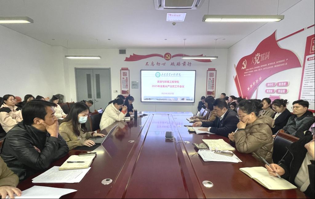 3月27日下午,资源与环境工程学院在淄博校区召开了2025年全面从严治党工作会议。会议旨在全面总结2024年学院在全面从严治党方面取得的工作成果,部署2025年全面从严治党的重点工作任务,同时启动深入贯彻中央八项规定精神学习教育。党总支书记马朝阳主持会议,学院全体领导班子成员、全体教职工和学生党员代表参加会议。