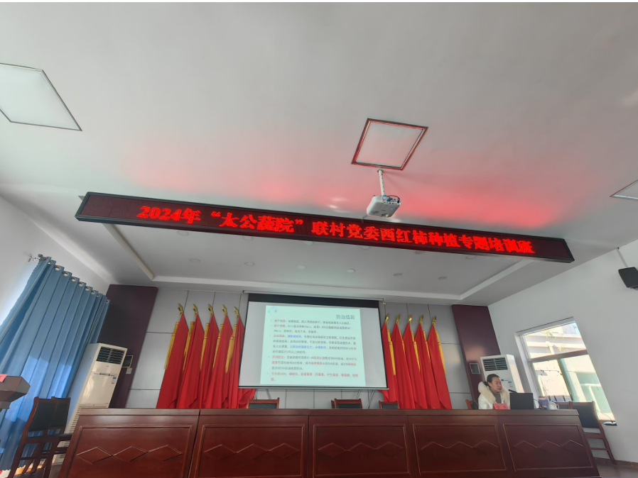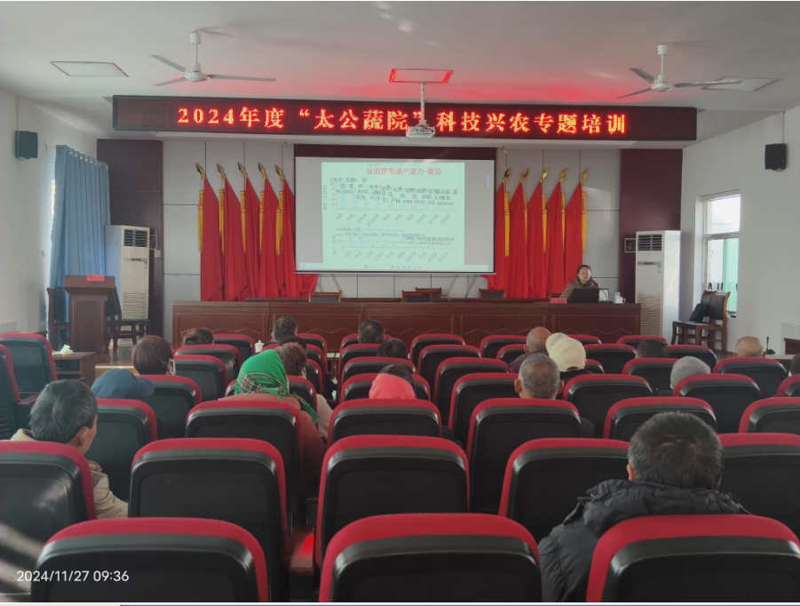 近年来,学院致力于强化党建引领、发挥专业优势,服务淄博各地农业发展,通过与区县开展校地融合项目,培养高素质的农业技术人才,推动农业科技进步和乡村振兴。11月27日,在高青县花沟镇镇政府组织开展的2024年度“太公蔬院”科技兴农专题培训会上,我院江丽华教授和李鹏教授分别围绕设施番茄养分管理、病虫害绿色防控技术等方面知识进行了讲解,为种植户科学施肥和防控病虫害,进一步促进番茄提质增产提供了技术服务支撑。