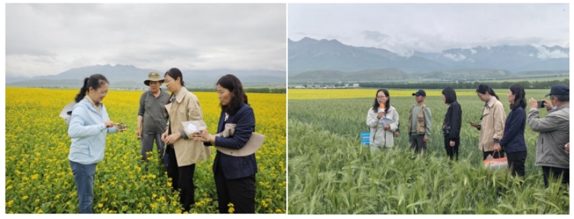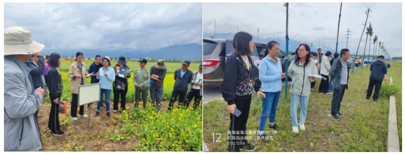 项目团队成员在海北州农牧研究所项目成员、青海大学项目成员老师的陪同下,深入项目现场,实地考察了“海北州农田低碳稳产关键技术研发应用”项目的青稞、油菜的技术应用示范推广情况、“海北州农牧废弃物资源化利用技术研发应用”项目的不同资源化利用技术下青稞、油菜的生长情况,并现场进行了培训工作等。