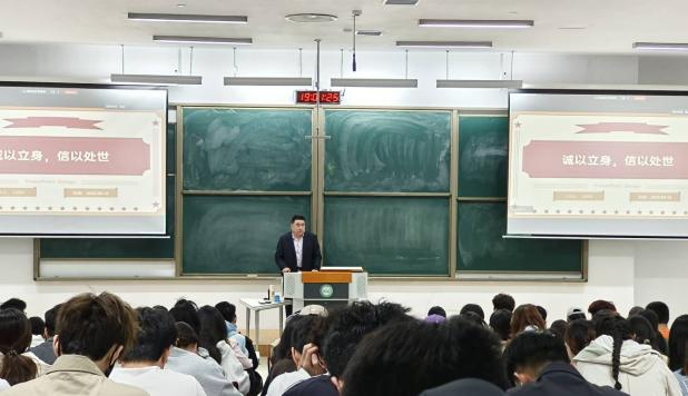 为深入贯彻落实党的二十大精神,推进“大思政课”建设与课程思政深度融合,2025年4月10日,我院党总支书记马朝阳采用“线上直播+线下研讨”教学模式,为全院大三、大四学生讲授题为诚信思政专题课。