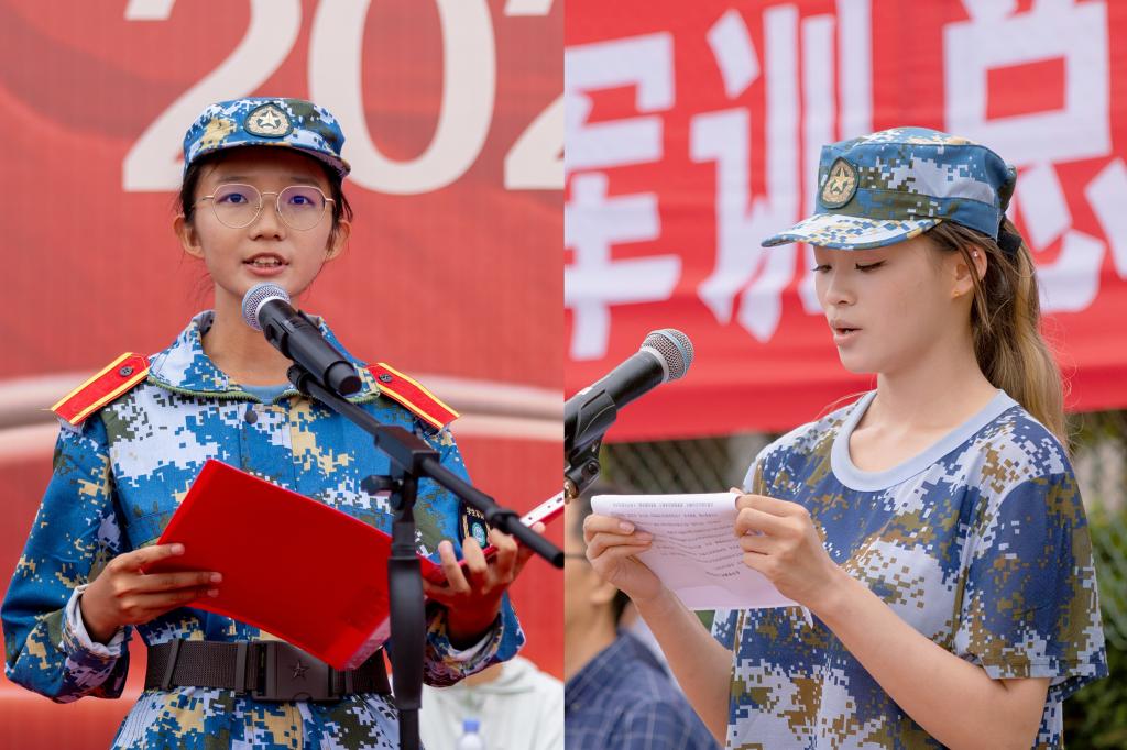农业科技学院王天琪、艺术学院任由名作为新生代表发言,她们表示军训不仅是一种体能上的锻炼,更是心灵的洗礼,通过军训战胜了困难、突破了自我,这种成长是人生道路上最宝贵的财富。接下来,她们将会珍惜大学时光,认真学习专业知识,培养实践创新能力,成为肩负时代重任的栋梁之才。