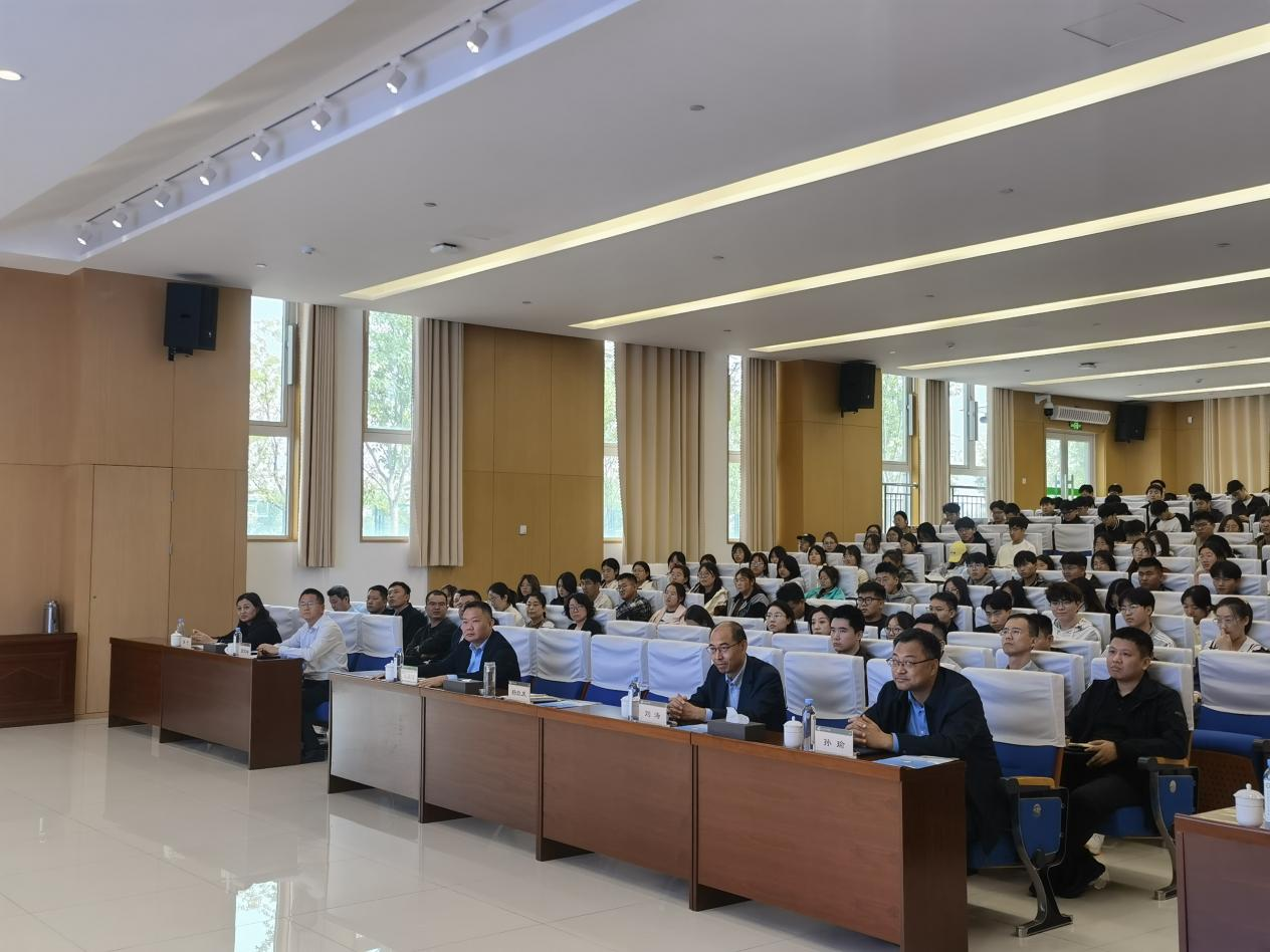 10月9日,淄博市人民政府副市长沙向东到bat365宣讲党的二十届三中全会精神并作形势政策报告。市政府副秘书长刘涛,淄博新区融合发展中心主任王聚宝等相关领导,学校党委(学院)办公室、学生工作部主要负责人和师生代表280余人参加报告会。报告会由党委委员、副校长杨玖庆主持。