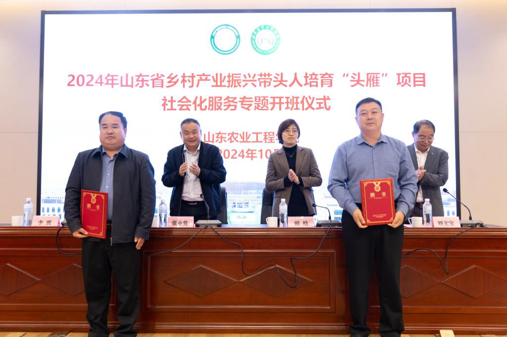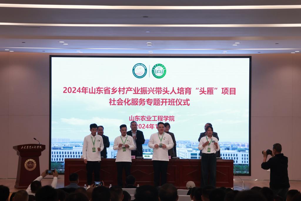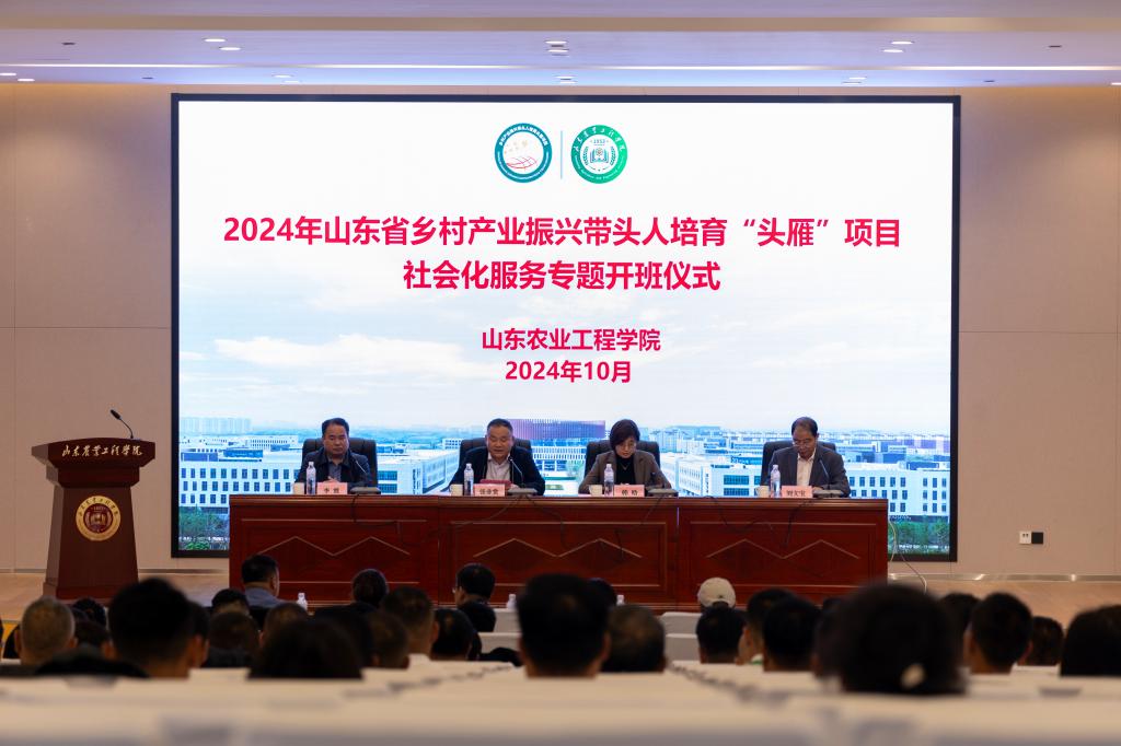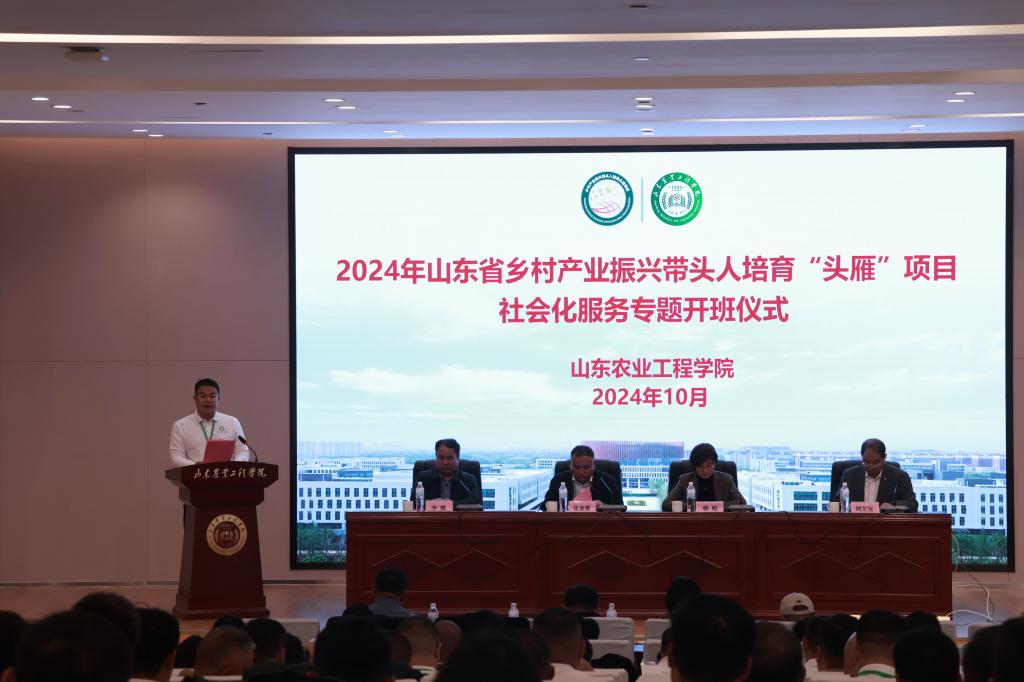 10月20日,山东省乡村产业振兴带头人培育“头雁”项目社会化服务专题培育班在bat365淄博校区启动。校党委副书记张业赏,省农业农村厅人事处三级调研员韩晗,校机械电子工程学院副院长李震出席开班式。开班式由干部进修学院院长刘文宝主持,来自全省16个地市的125名社会化服务产业的学员参加开班式。