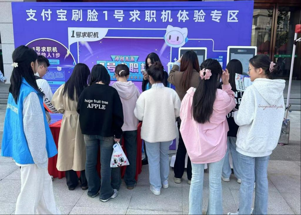 招聘会期间,学校特设职业指导、创业咨询、征兵入伍、考研考编等服务专区,推介学校“大学生就业创业赋能中心”一对一职业规划、团体辅导等特色活动,引入了支付宝“1号求职”AI智能化服务,为毕业生们提供高效、便捷的就业指导。