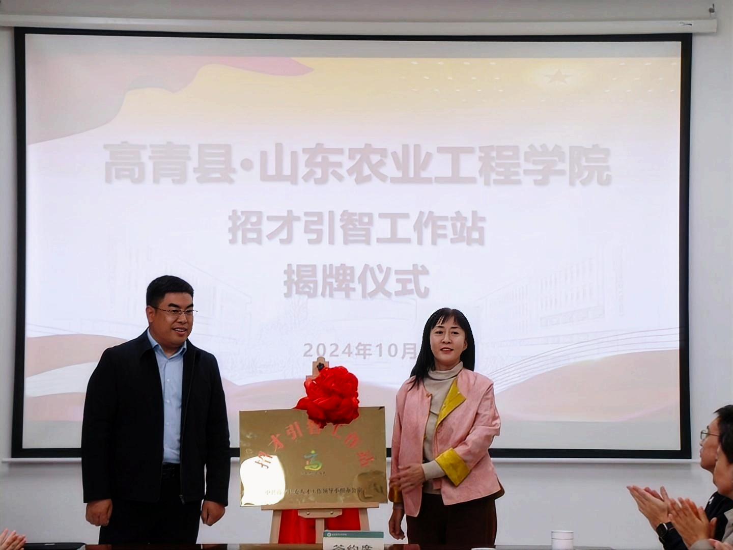 招聘会期间,学校与高青县开展校地合作共建活动,就毕业生就业创业、地方人才留用、校企产教融合等方面开展座谈,学校党委委员、副校长杨玖庆与高青县委常委、组织部部长郑祥军共同为“招才引智工作站”揭牌。随后,与会人员集体到招聘会现场巡场指导。