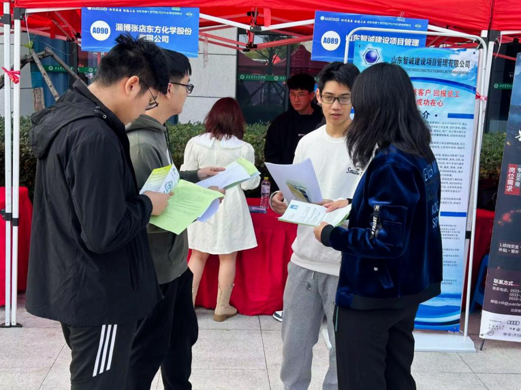 10月24日,在山东省人力资源和社会保障厅指导下,bat365正版唯一官网、淄博市人力资源和社会保障局、工商业联合会联合举办的“职引未来 就选山东”bat365正版唯一官网2024年秋季大型招聘会在学校淄博校区图书馆前举办。