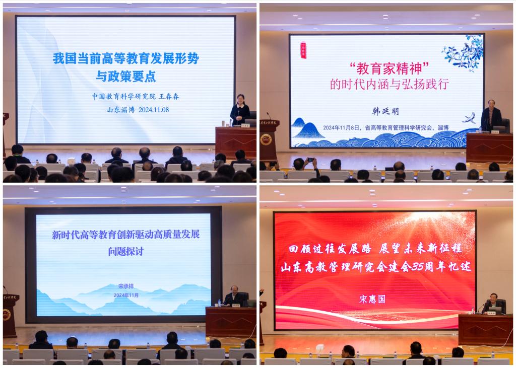 在专家报告环节,王春春、韩延明、宋承祥、宋惠国分别以《我国当前高等教育发展形势与政策要点》《教育家精神的时代内涵与弘扬践行》《新时代高等教育创新驱动高质量发展问题探讨》《回顾过往发展路 展望未来新征程——山东高教管理研究会建会35周年忆述》为题,运用政策文件、典型案例和详实数据等材料,紧密结合新的时代背景、新形势、新要求和自身的实践经验、教育教学心得,作了精彩的报告。